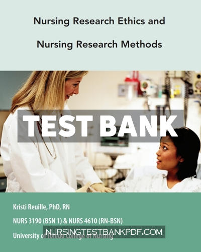 Test Bank for Custom eBook for University of Toledo College of Nursing – Nursing Research Ethics and Nursing Research Methods NURS 3190 (BSN 1) & NURS 4610 (RN BSN) 1st Edition by Jones & Bartlett Learning
